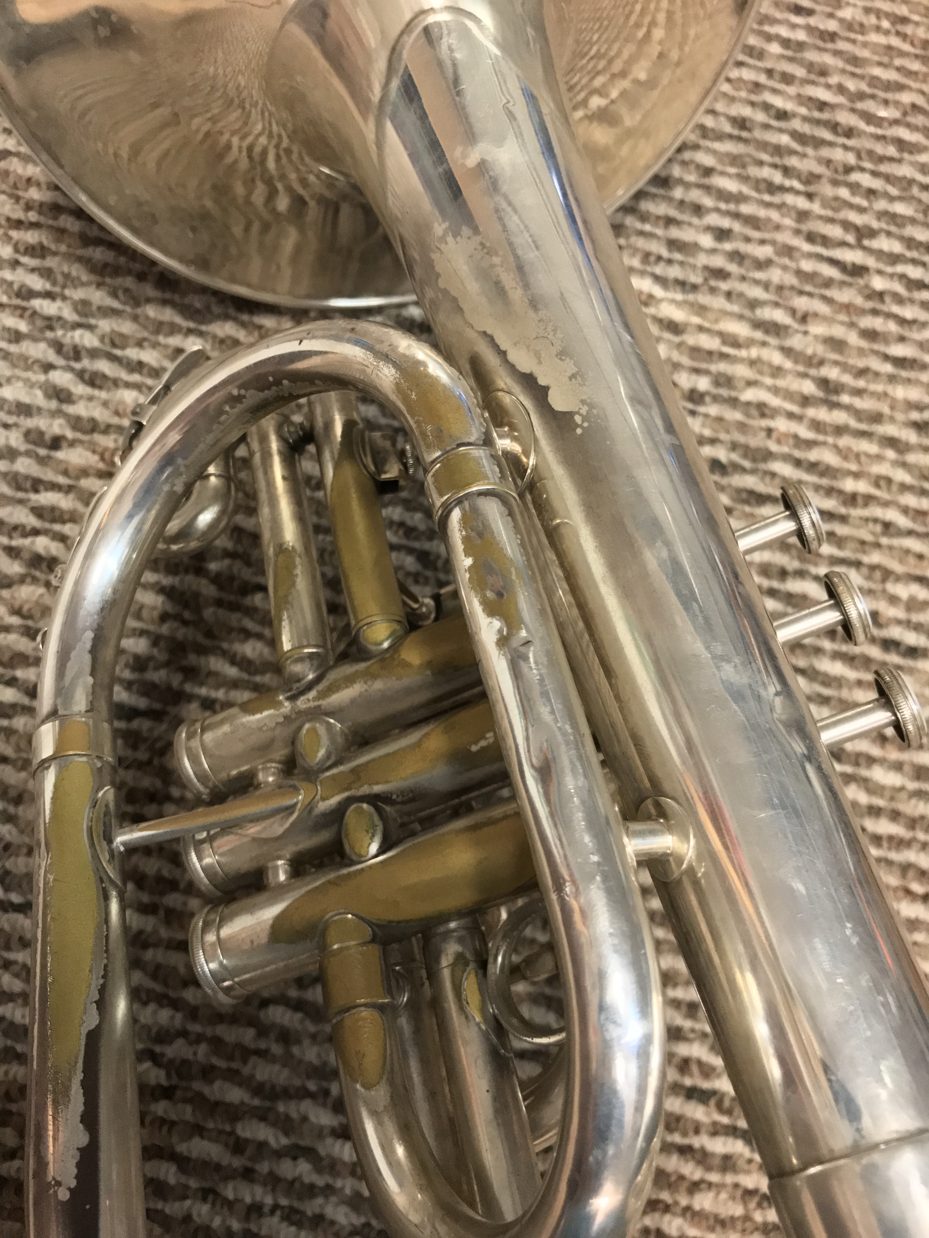 This gallery will begin with horns of all types that show their pre-restored condition. You will eventually see the horns in their transformed condition. Many of these horns are as old as the High School itself.